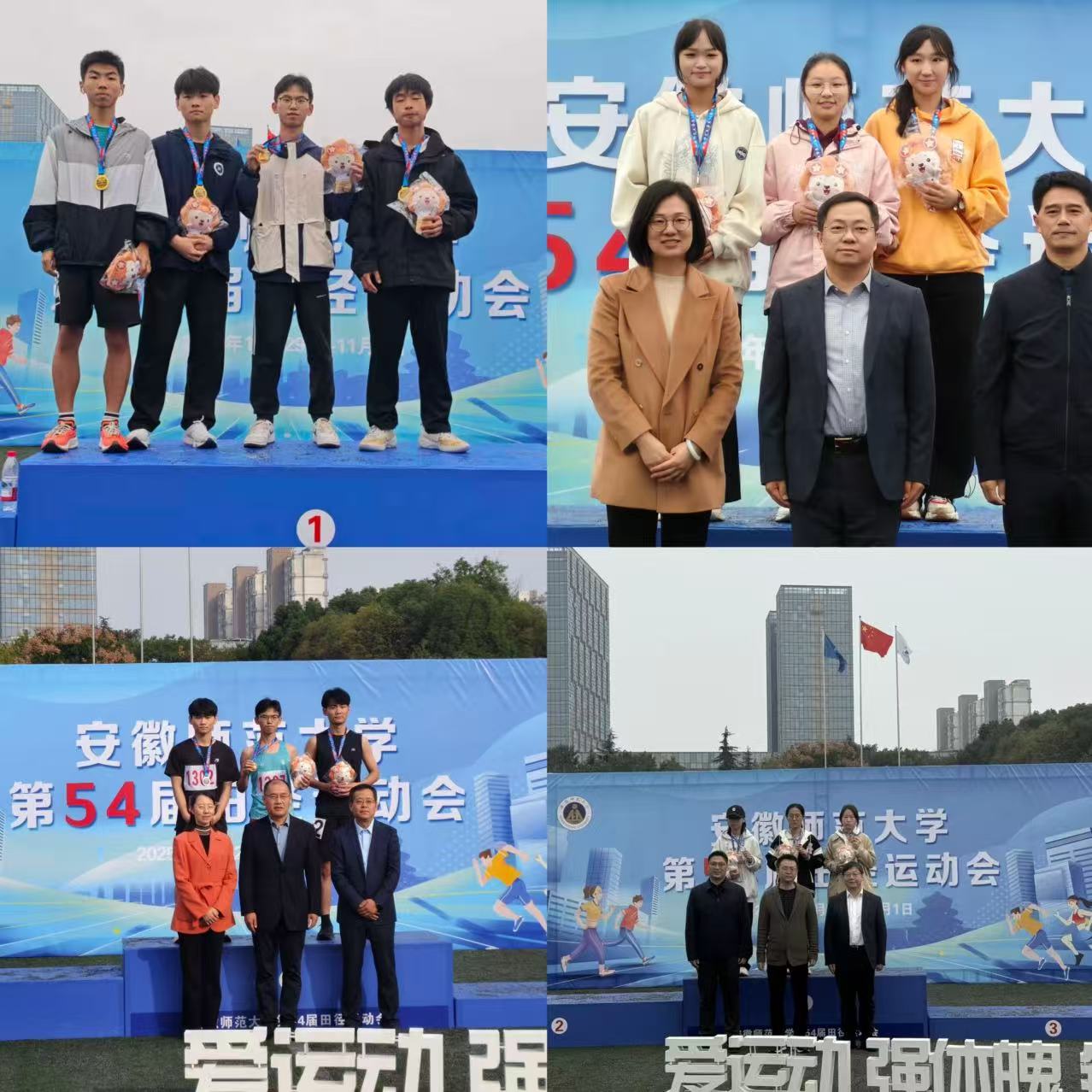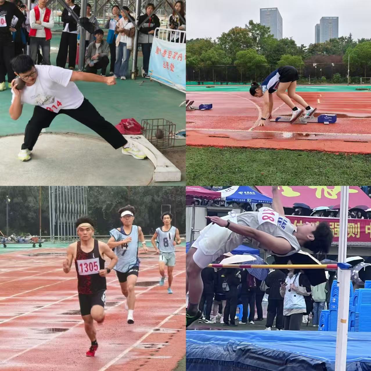 奋勇争先,赛场扬威。在运动场上,学院师生运动员当仁不让,锐不可当。教工组中,谢小娟老师在100米和400米比赛中分别荣获第三名和银牌,女子4×100米获得铜牌,同心协力项目以2000个的绝对领先优势取得第一名。学生组中,男子跳远、三级跳比赛中,朱正同学夺得双银牌,屡获佳绩;黄兴宇同学在男子200米、400米比赛中分获金银牌,喜报频传;朱雯同学在女子100米、200米比赛中均蝉联冠军,包揽金牌;屈兴乐、万奥运同学包揽400米栏项目金银牌;吴豪、赵俊祥同学挑战极限,分获男子七项全能比赛第一、第二名;王凌同学首次参加校运会便在女子800米、400米项目分获金银牌;全悦男同学成功打破学校男子甲组5000米记录,再获金牌。在接力比赛中,运动员们齐心协力,在男女混合4×100米项目获得铜牌;女子4×400米项目荣获第二名,获得银牌;女子4×100米、男子4×400米接力项目均斩获第一名,取得冠军,登上冠军领奖台,创造学院最好成绩!