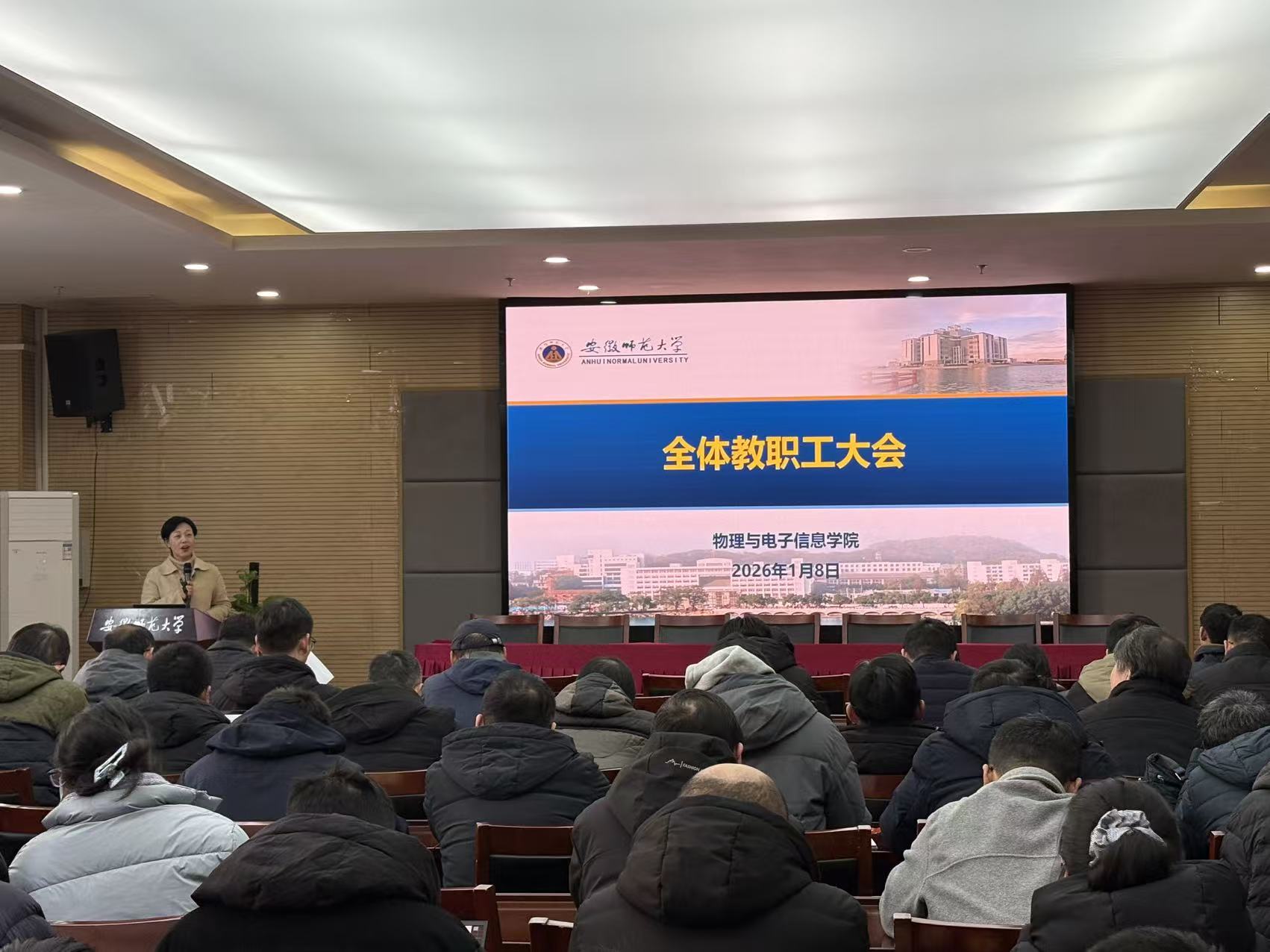 在物理楼304会议室召开全体教职工大会,全面总结2025年度学院工作,布置学期末重点工作,学院全体教职工参加会议。会议由学院党委书记宋静主持。
