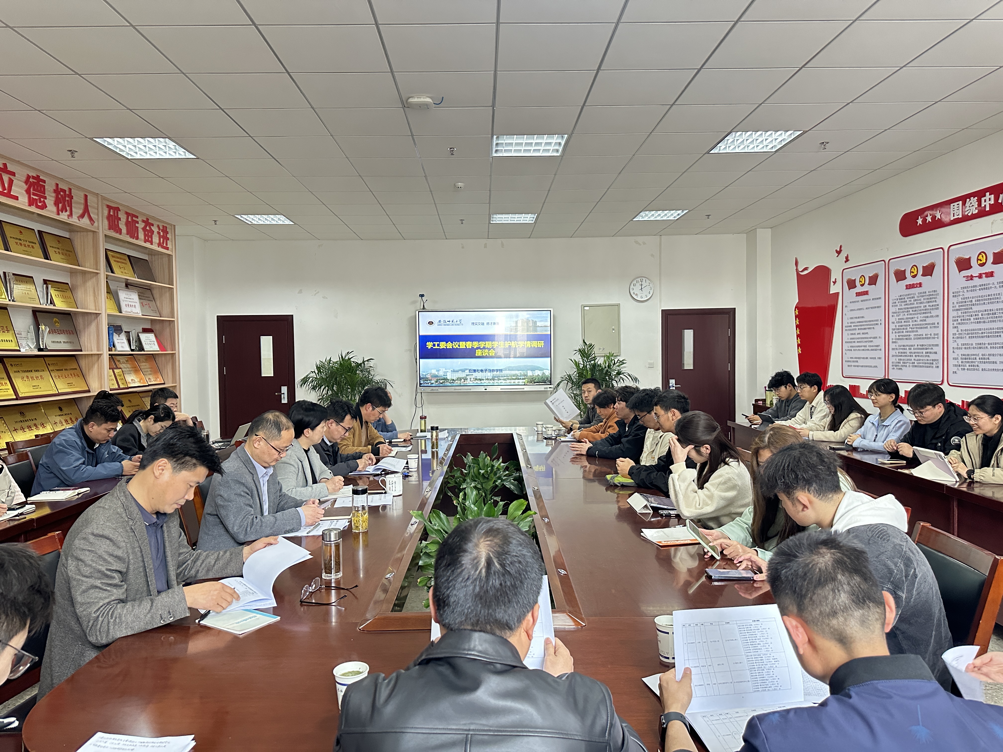 学工委会上,学院通报了2026届本科毕业生考研调剂情况、本学期学业预警重点关注学生及第一季度危机库学生情况等,围绕升学就业和心理健康商讨了重点学生的具体帮扶工作。