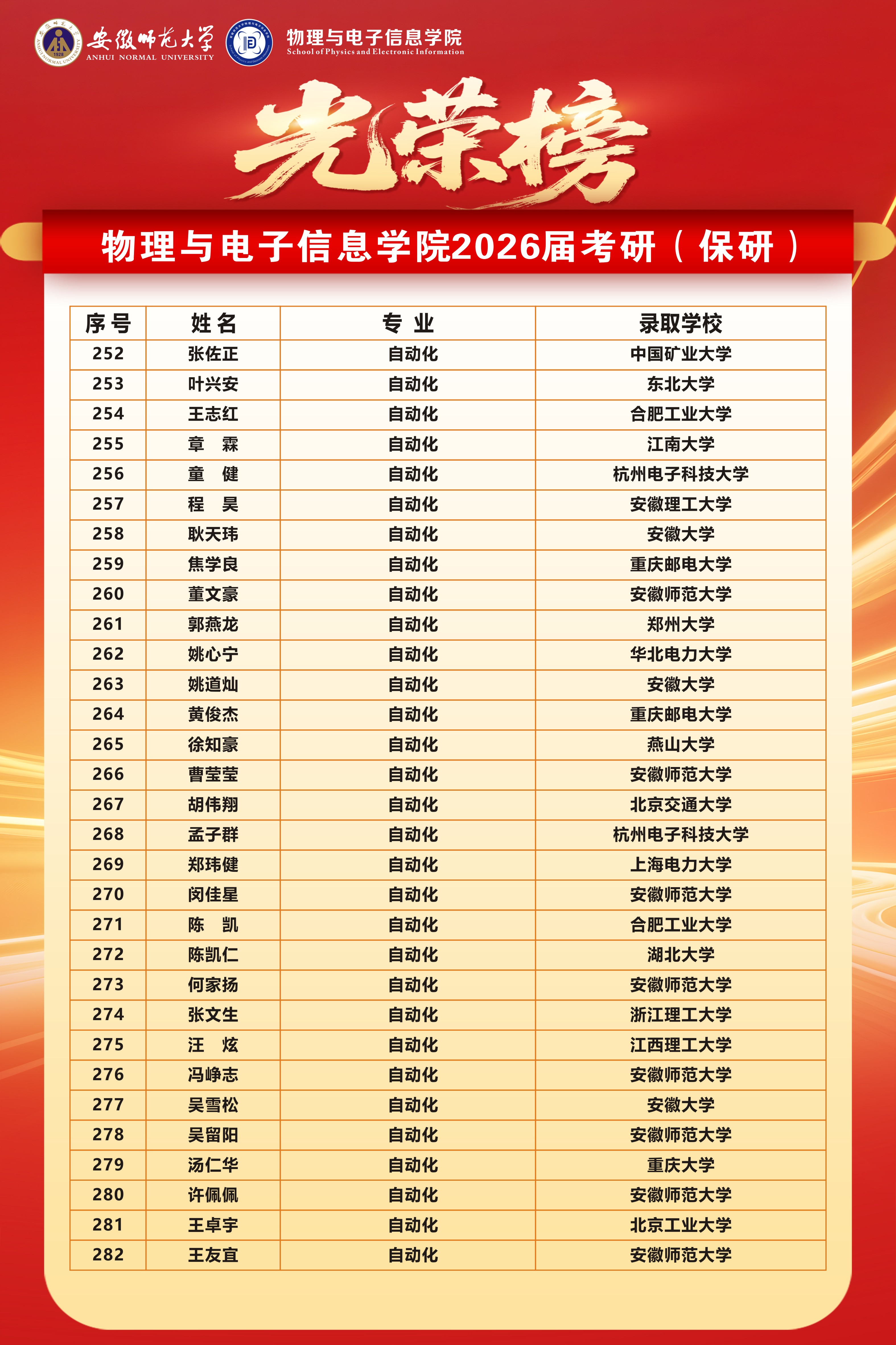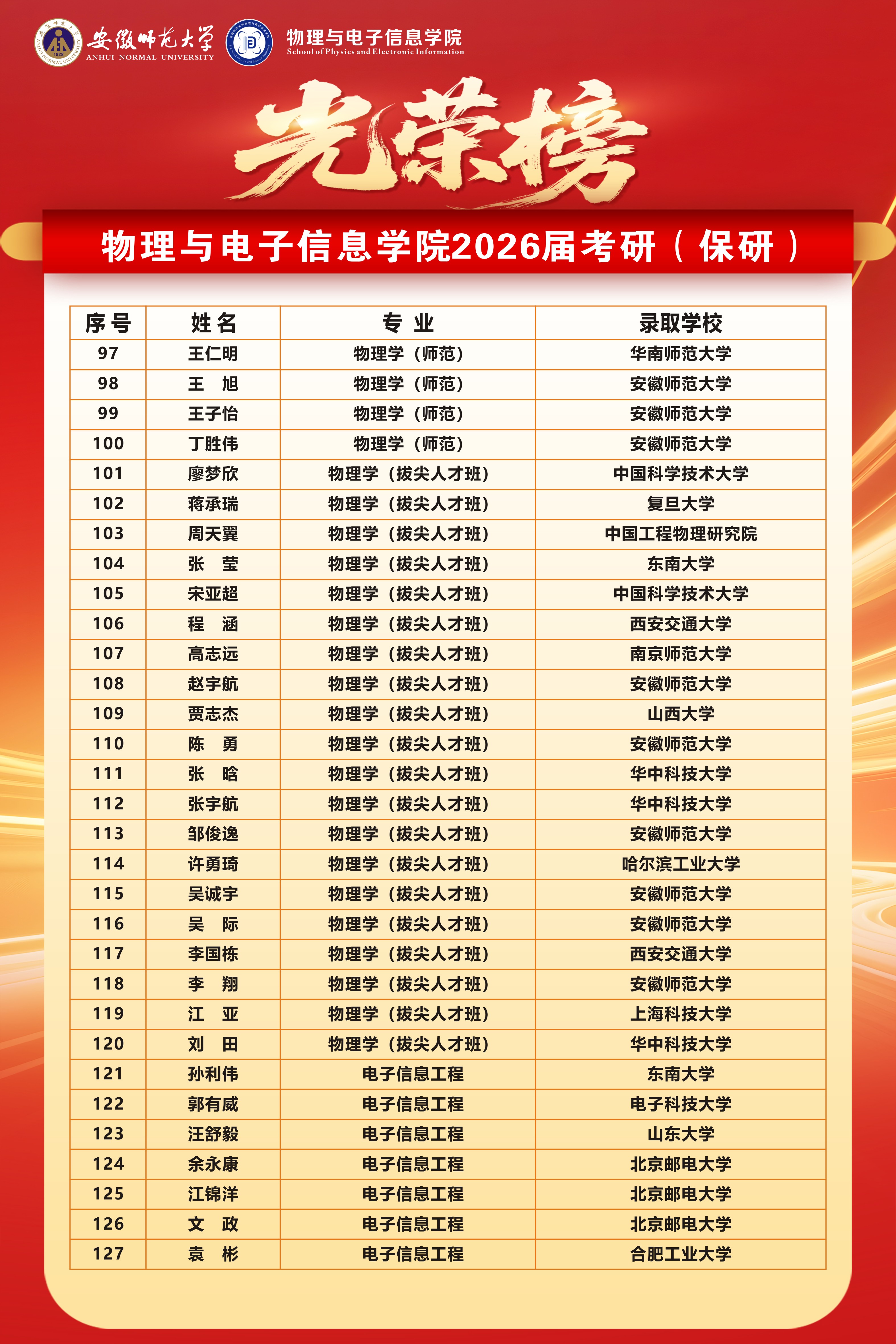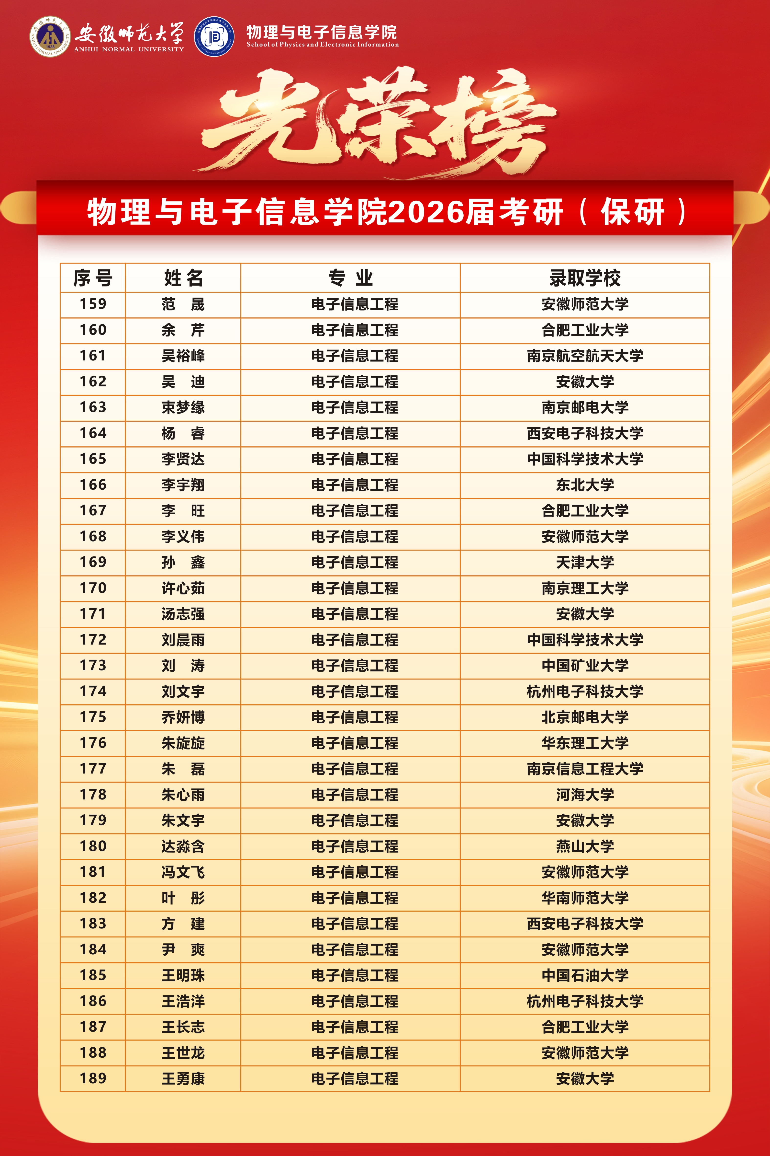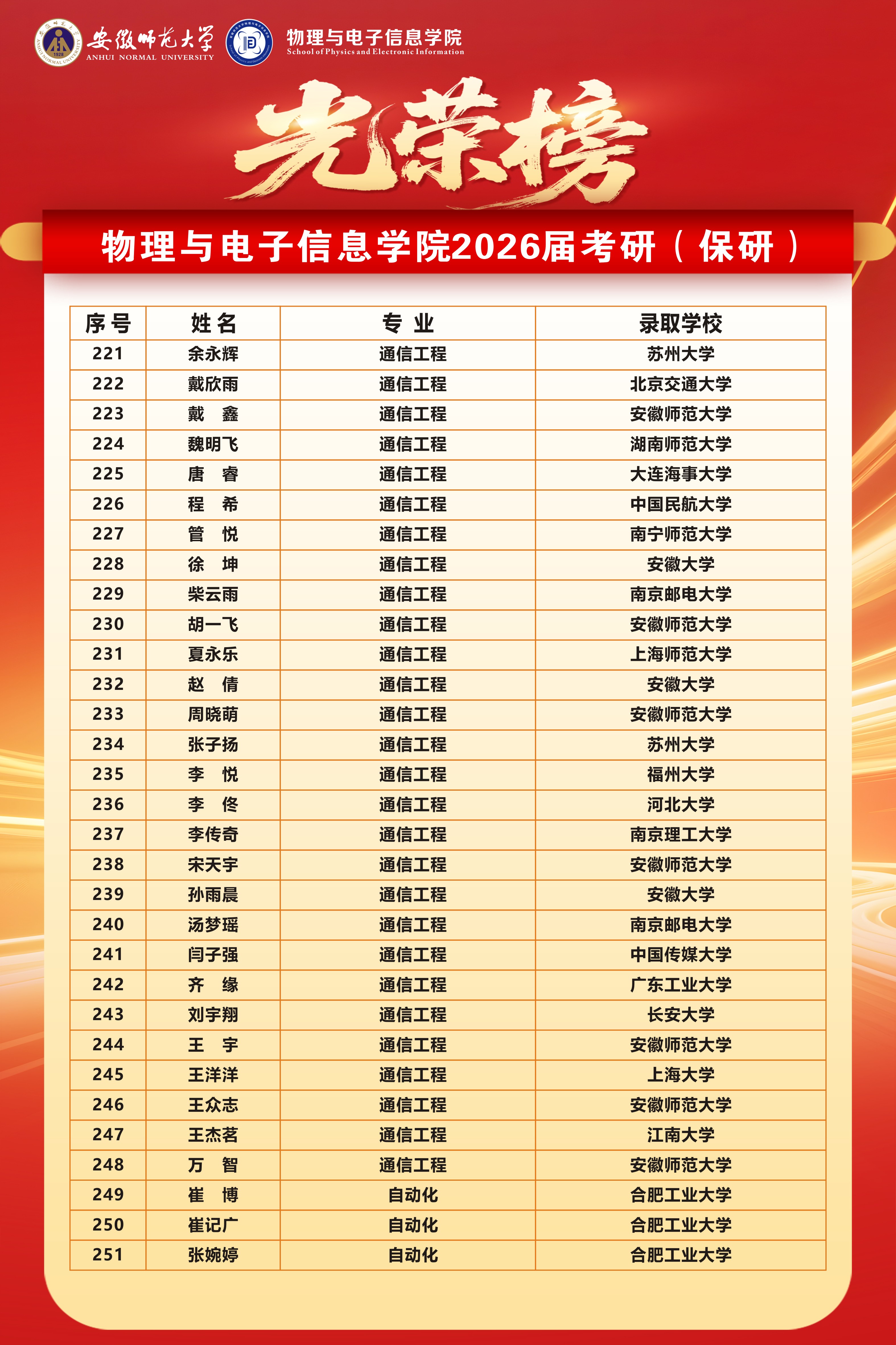 二、两个国家级一流专业升学率再创新高:物理学(师范)专业达55.8%,电子信息工程专业高达70.3%,均为学院历届最高。