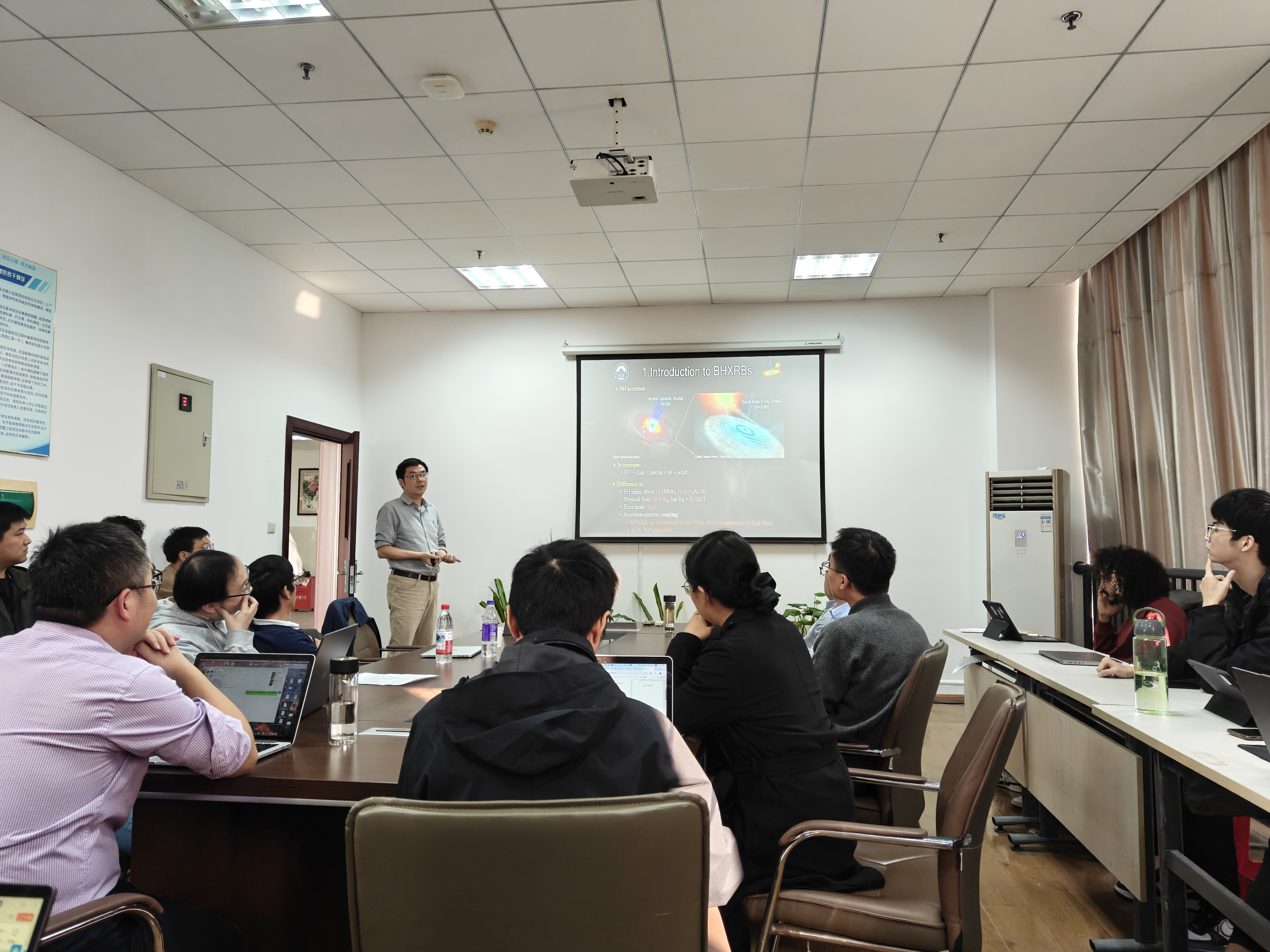 邀请,武汉大学教授游贝于11月12日来校进行学术交流,并做了题为《Formation of a magnetically arrested disk (MAD) in a black hole X-ray binary》的学术报告。报告会在做爱自拍