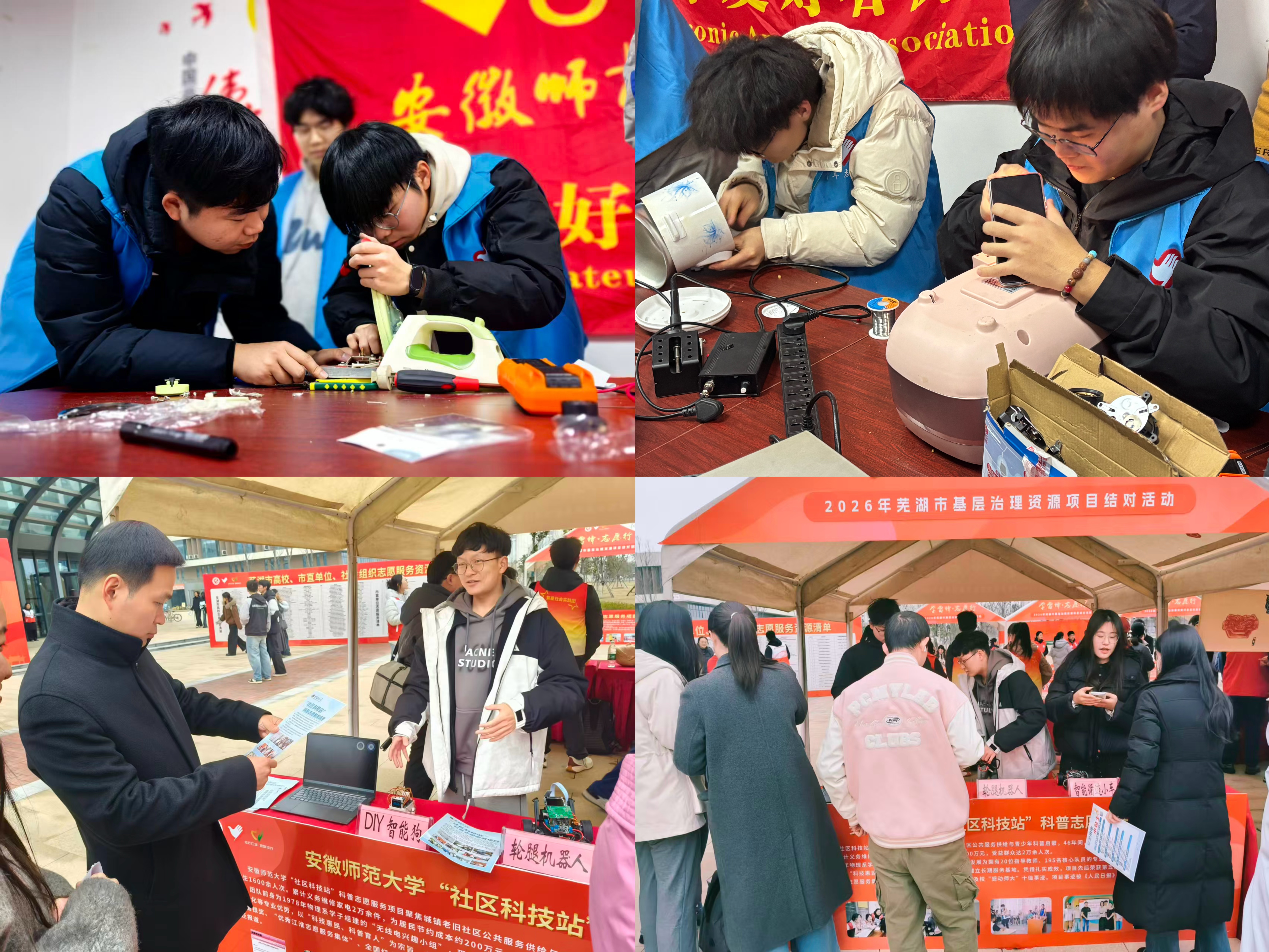 传承雷锋精神,志愿服务进社区。电子爱好者协会前往中央城社区开展小家电义务维修与用电安全科普宣讲活动。志愿者们耐心帮助居民维修故障电器,普及家电日常使用、保养维护及安全用电知识,切实解决居民生活中的实际困难。同时,“社区科技站”项目积极参与“学雷锋·志愿行”芜湖市基层治理志愿服务资源结对活动,项目团队得到了相关街道社区的浓厚兴趣。下一步,学院将持续拓展服务覆盖面,推动科技志愿服务常态化落地更多社区。