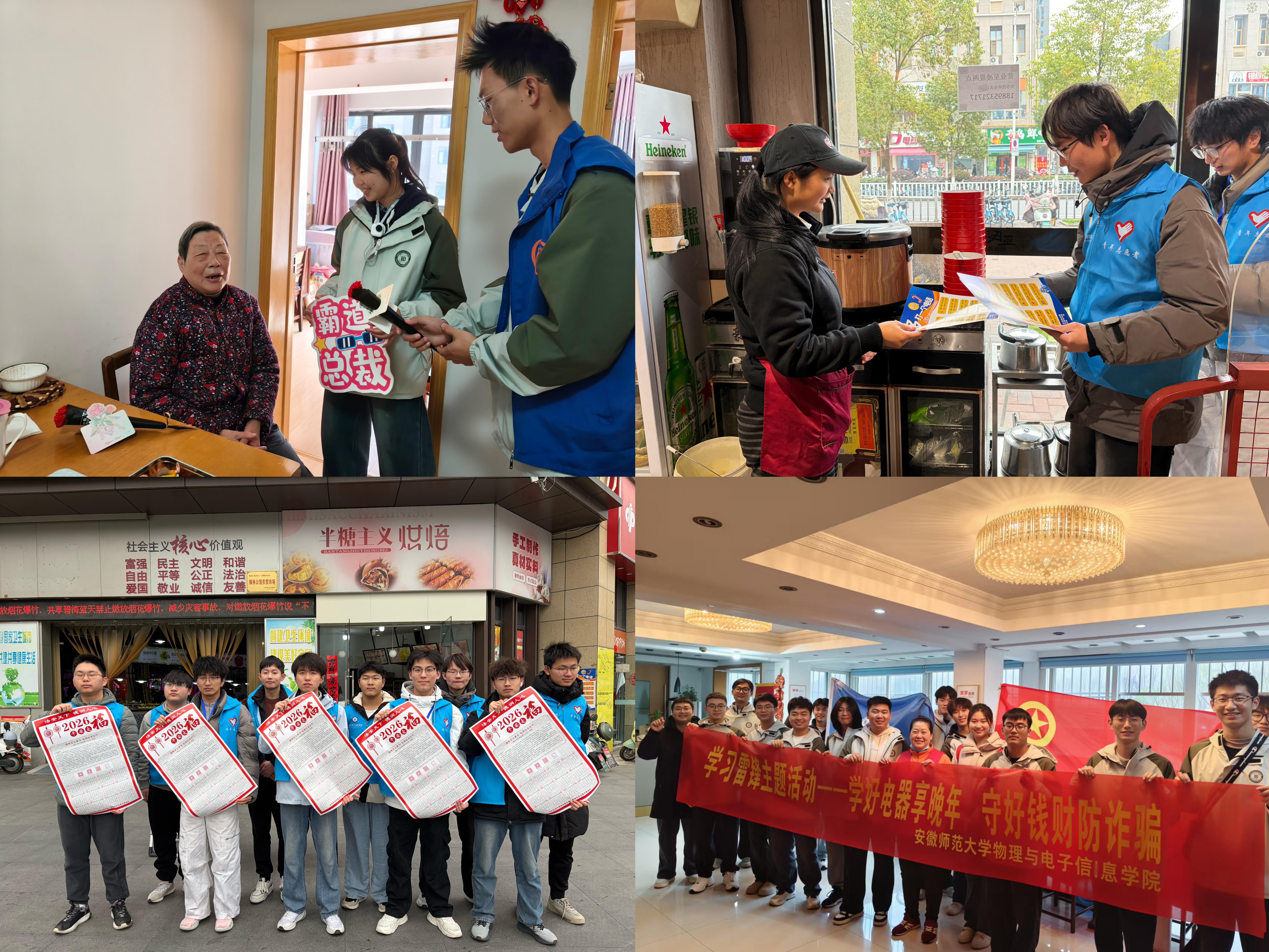 织密防护网络,反诈宣传护平安。学院反诈宣讲教育志愿服务队联合弋江区反电诈中心、高校园区派出所,开展“全民反诈,你我同行”主题宣讲活动。志愿者们走进居民小区和老年公寓,化身“反诈讲师”,以真实案例为切入点,结合有奖问答等互动形式,深入浅出地讲解当前高发电信网络诈骗的套路与防范要点。现场群众踊跃参与,气氛热烈,成为一道独特的“反诈风景线”。