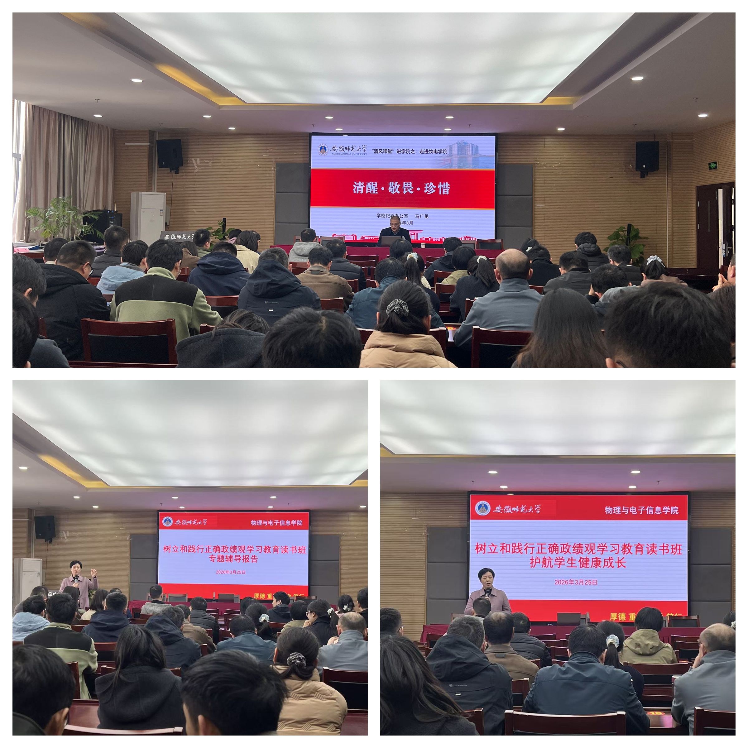 读书班邀请校纪委副书记、纪委办主任马广见同志作了专题辅导报告。马广见以“清醒·敬畏·珍惜”为题,结合大量鲜活的案例指出,全面从严治党已是常态,严的基调只会越来越严,高校绝非净土,要保持清醒的认识,始终绷紧纪律规矩这根弦。他语重心长地教育警示党员干部要常怀敬畏之心,以案为鉴、以案明纪,树立和践行正确政绩观,坚持实事求是、求真务实、为人民出政绩、以实干出政绩,注意防范和纠治政绩观偏差。